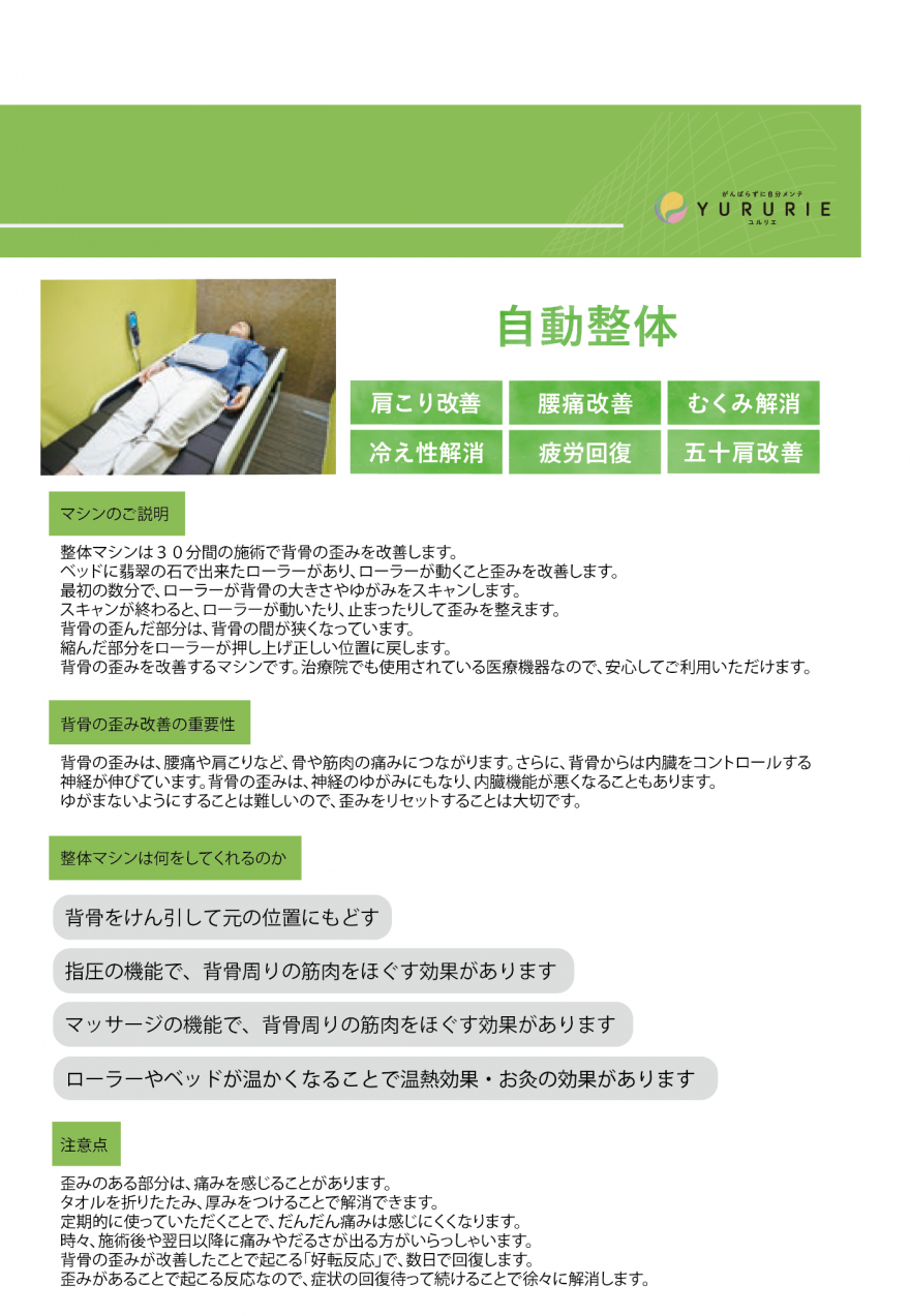 YURURIEはカラダをメンテナンスして、今以上の快適な生活を実現するための施設です。 今回は皆様に、YURURIEのおススメマシン3選をご案内いたします。