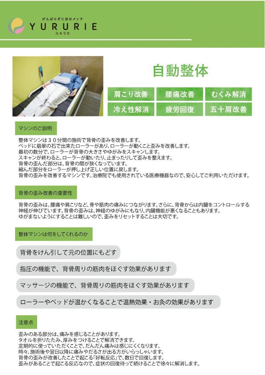 YURURIEで大人気の『自動整体マシン』のご案内です